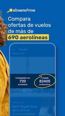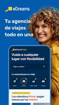 Para completar tu experiencia de viaje, eDreams te conecta con un amplio abanico de 800 agencias de alquiler de coches, incluyendo marcas de confianza como Hertz, Avis y Europcar, permitiéndote disponer de un vehículo en cualquier momento y lugar. Pero la funcionalidad de eDreams va más allá de la reserva: recibe notificaciones de vuelo en tiempo real sobre puertas de embarque, retrasos o cancelaciones, accede a tus tarjetas de embarque y gestiona tu check-in automático para aerolíneas seleccionadas. Consulta tus itinerarios sin conexión y explora guías de viaje gratuitas para sumergirte en tu destino, todo desde la comodidad de tu dispositivo.