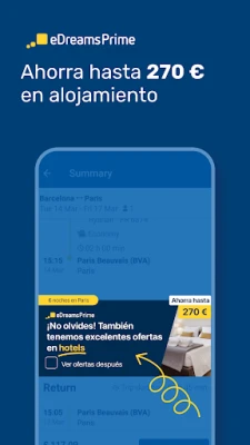 Con eDreams, accedes a una vasta red de más de 600 aerolíneas, incluyendo gigantes como Iberia, British Airways, Ryanair y Vueling, ofreciendo tanto rutas de larga distancia como vuelos económicos que se adaptan a tu presupuesto. Además, explora una diversa colección de más de 2 millones de alojamientos, desde establecimientos de renombre como Marriott y Melià Hotels & Resorts, hasta encantadoras estancias locales. Maximiza tus ahorros: combina tu reserva de vuelo y hotel para desbloquear descuentos significativos, facilitando la búsqueda del equilibrio perfecto entre comodidad y precio.