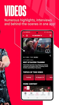 Complementa tu experiencia con una vasta biblioteca de contenido audiovisual. Accede a los vídeos de FC Bayern TV, con todos los reportajes y programas disponibles para suscriptores Plus en cualquier momento y lugar, transformando tu dispositivo en una sala de prensa y entretenimiento personal. Además, pon a prueba tus conocimientos futbolísticos con el emocionante juego de pronósticos, donde podrás adivinar alineaciones, resultados y goleadores para competir por premios exclusivos. Para una conexión verdaderamente personalizada, configura notificaciones push que te mantendrán informado exactamente sobre lo que más te interesa, desde goles hasta noticias de última hora, asegurando que tu experiencia con el FC Bayern sea siempre a tu medida.