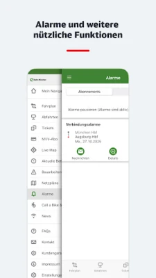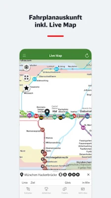 Planifica cada trayecto con precisión y mantente informado en tiempo real. "Mein Navigator" te permite guardar tus conexiones favoritas y consultarlas rápidamente, incluso mediante control por voz. La completa información de horarios cubre todo el MVV y las conexiones en Baviera, facilitando la búsqueda de rutas entre paradas o direcciones específicas. Guarda tus trayectos diarios como favoritos y organiza tus preferencias con la función Drag&Drop. Consulta las próximas salidas en tu parada, incluyendo posibles retrasos, y activa el "Verspätungs-Alarm" para recibir notificaciones proactivas si tus trenes sufren demoras. Visualiza la red de transporte público con los prácticos Netzpläne, mantente al tanto de las "Bauarbeiten" y usa el "Echtzeit Live Map" para ver dónde se encuentra tu S-Bahn en cada momento, con información de retrasos incluida.