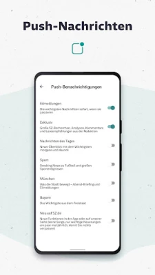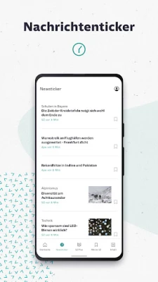 La SZ.de-App está diseñada para su comodidad y personalización. Reciba un flujo constante de información en tiempo real con el 'Ticker de Noticias', una sección dedicada en la parte inferior de su pantalla que le muestra cada novedad en el instante de su publicación. Marque artículos de interés con el icono de la estrella y acceda a ellos fácilmente en 'Mis Artículos', donde podrá leerlos incluso sin conexión y gestionar su lista con un simple deslizamiento. Comparta contenido relevante al instante en sus redes sociales preferidas o por correo electrónico, y adapte su experiencia de lectura ajustando el tamaño de la fuente a su gusto personal a través del menú de configuración.