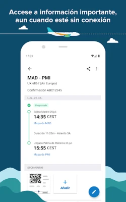 Olvida la angustia de buscar detalles cruciales en el último minuto. Con TripIt, toda la información esencial de tu viaje, desde los números de confirmación del hotel hasta los horarios de llegada de vuelos, está al alcance de tu mano, incluso sin conexión a internet. Además, puedes almacenar documentos importantes como pases de abordar, identificaciones o fotos relevantes, asegurando que cada detalle esté seguro y accesible. La aplicación también es tu compañera de ruta ideal, ofreciendo herramientas de mapas para trazar tus trayectos, encontrar rutas de transporte optimizadas y localizar puntos de interés cercanos como restaurantes, estacionamientos o cajeros, haciendo que cada exploración sea fluida y sin estrés.